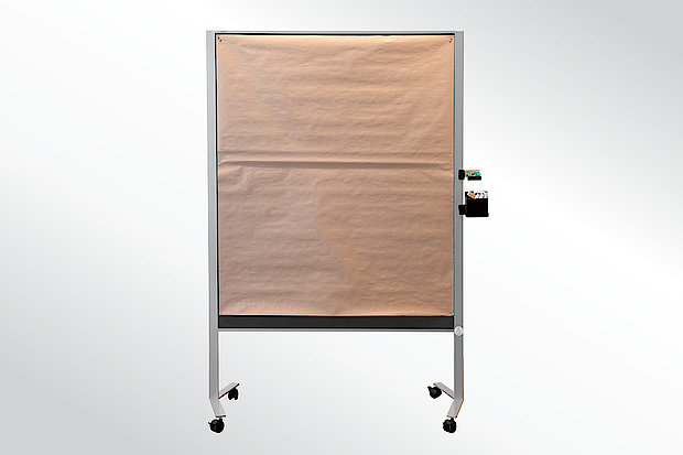 Die Kombination aus Pinwand und Magnetschreibtafel besticht durch zeitloses Design – geradlinig und ohne Schnörkel. Nahtlos gehen die Standbeine in die breiten Seitenprofile des Rahmens über. Die V-förmigen Füße sind mit hochwertigen Lenkrollen ausgerüstet.
